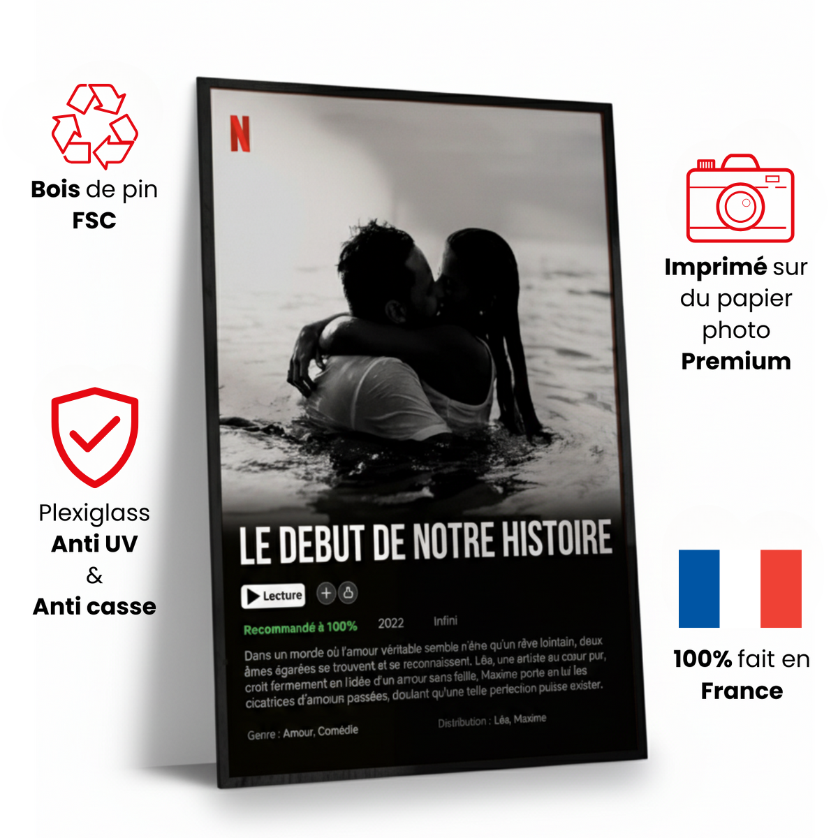 Nos affiches sont imprimées sur un papier photo premium 250 g/m², avec des encres haute définition pour un rendu digne d’un véritable poster de film. Chaque cadre est en bois naturel FSC et assemblé avec soin.