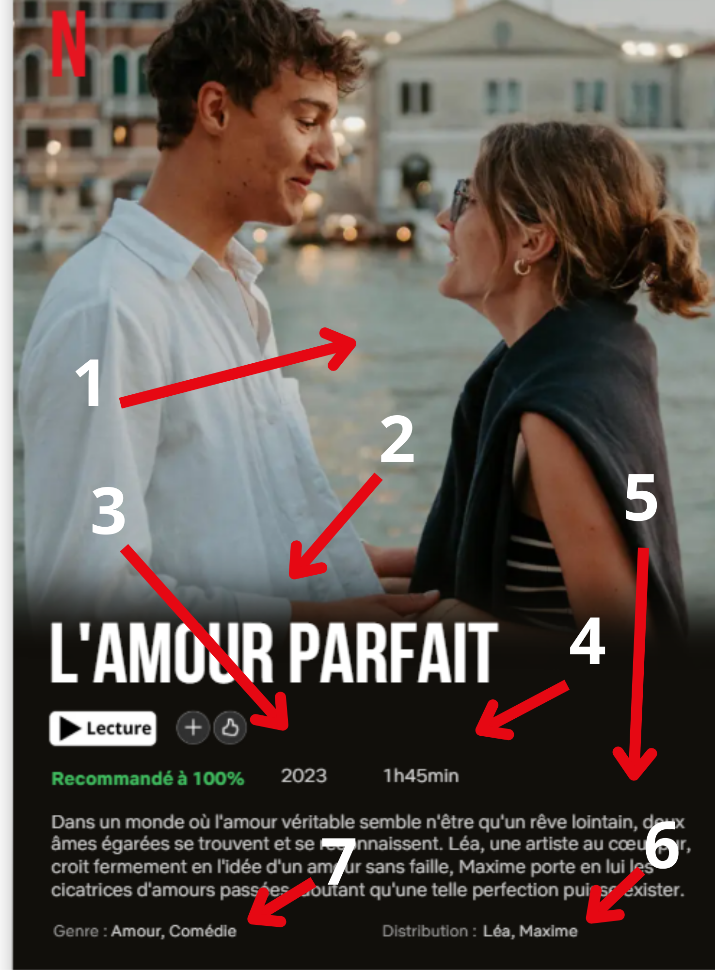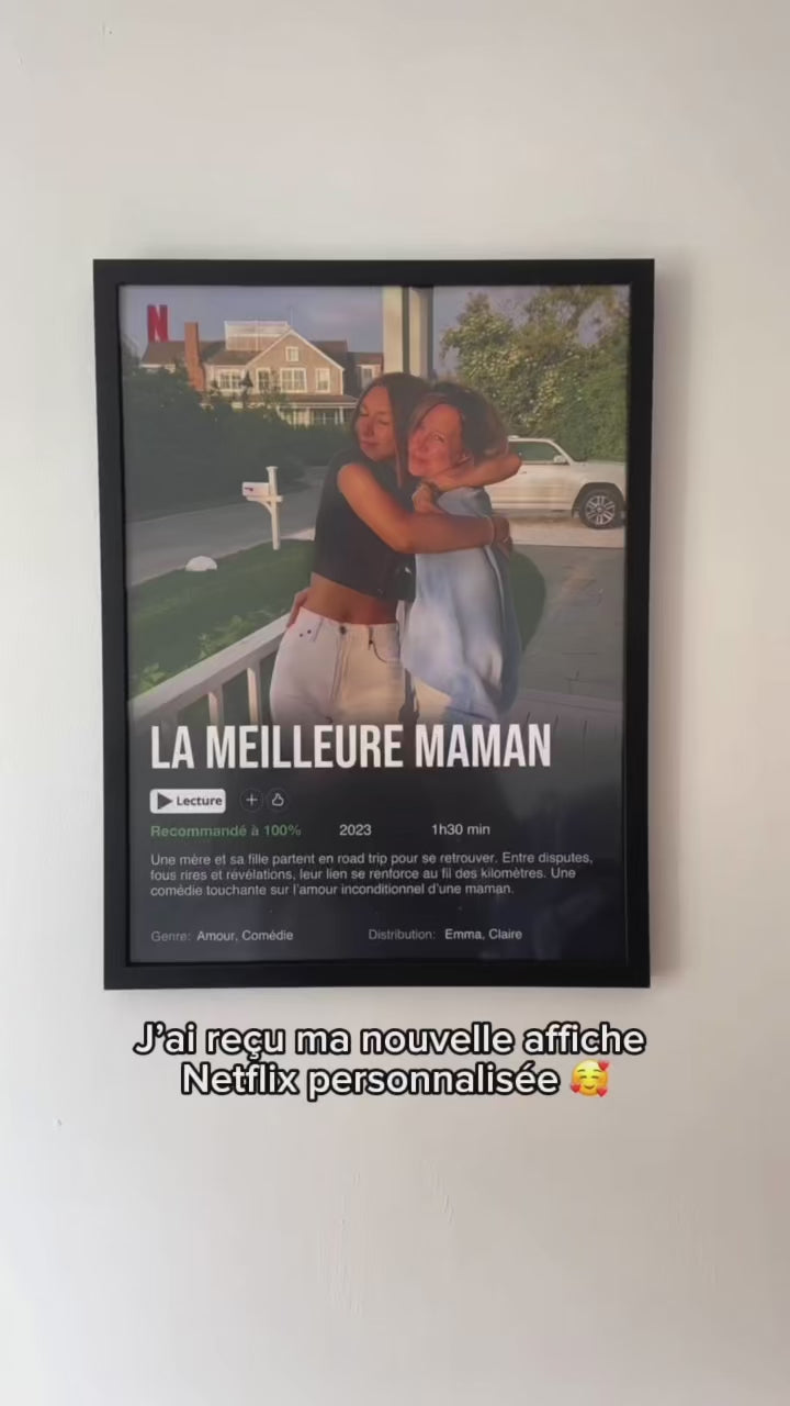 Vous pouvez personnaliser le titre du film, la description, les prénoms, la date et la photo. Tout se fait directement sur la page du produit avant d’ajouter au panier. Vous verrez un aperçu en temps réel de votre création.
