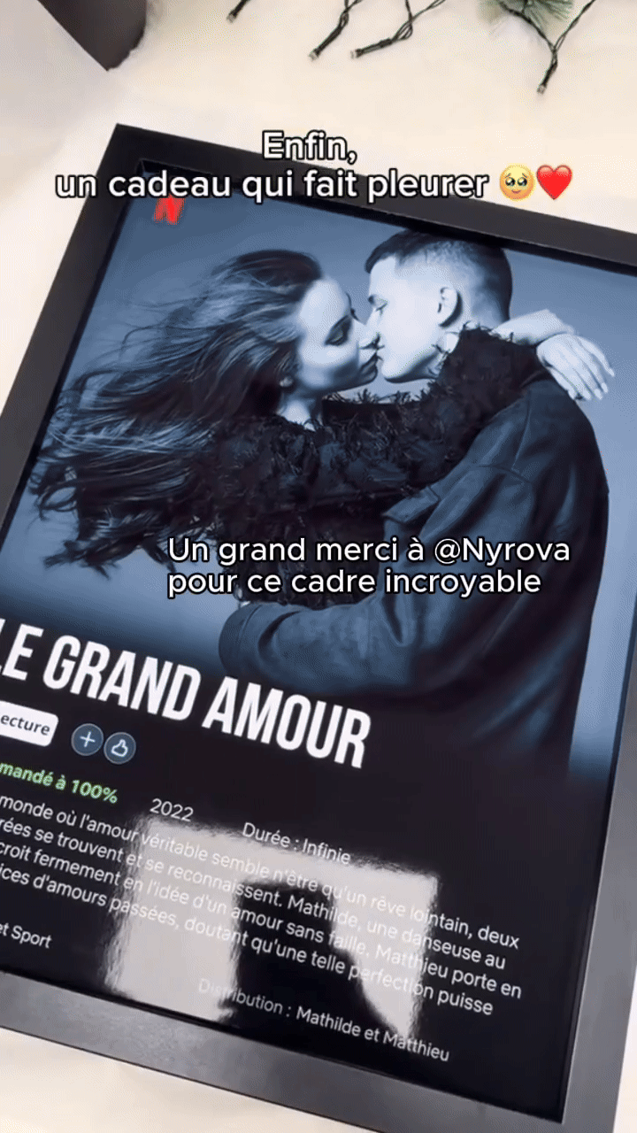 Chaque détail est pensé pour capturer la magie de votre couple : vos prénoms, votre photo, votre date, tout devient le scénario de votre propre film.